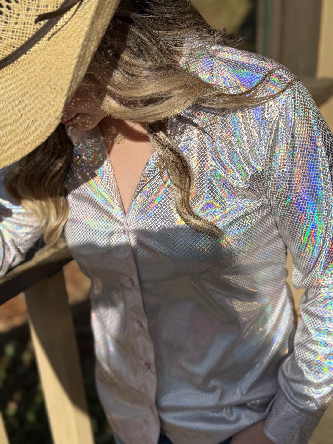 Designed by The Cowgirl Shop, this is the newest mesh sleeve rodeo shirt yet — made...