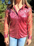 Lightweight, flowy, and sparkly in all the right ways—this shirt is designed to keep you comfortable, stylish, and just the right amount of bold. The body fabric is buttery soft with a touch of stretch, while the mesh sleeves bring that unforgettable shimmer that pops whether you’re in the stands, the saddle, or on the dance floor.