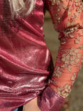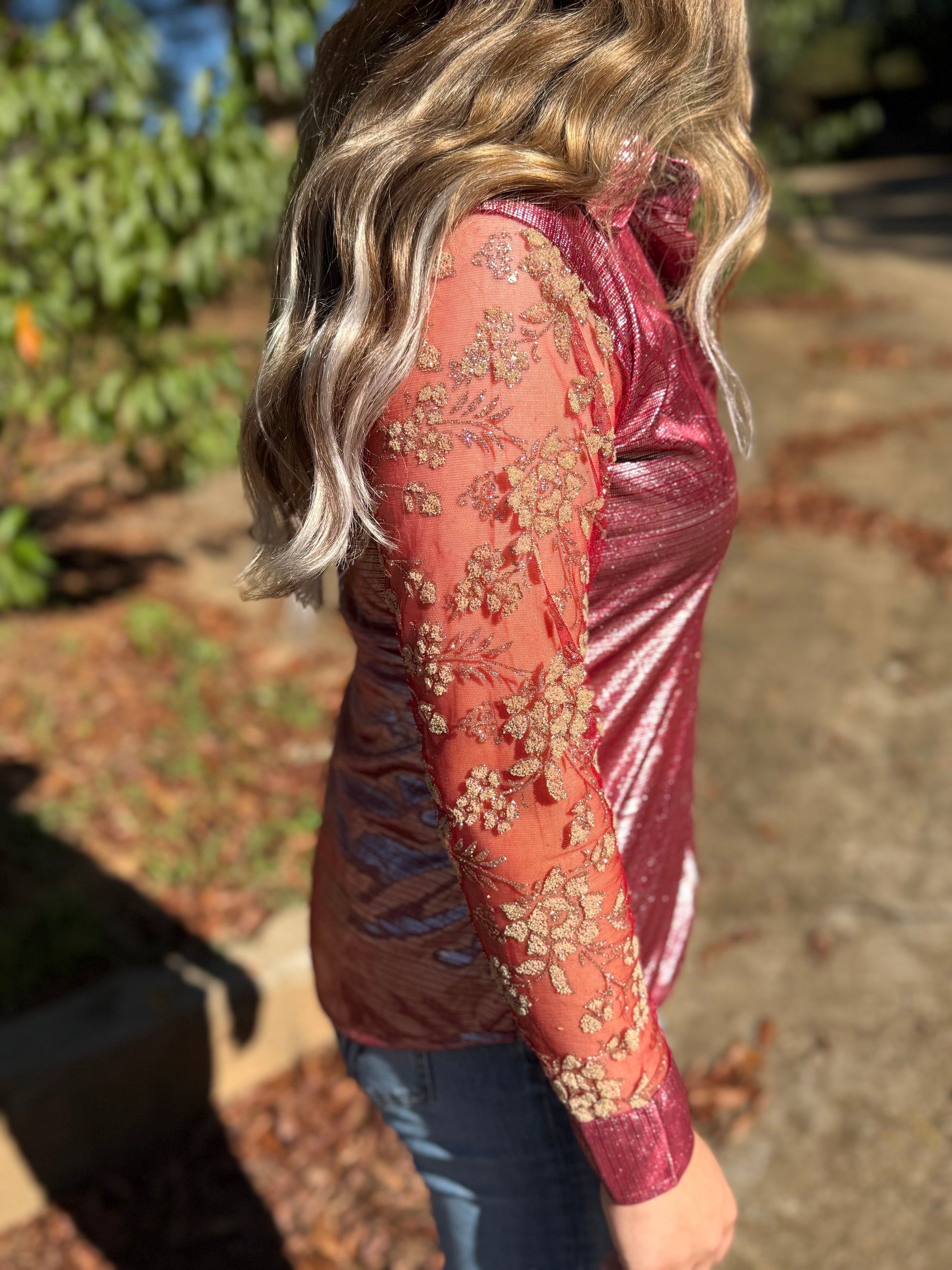 Cooler months? Pair it with a black or nude undershirt and watch those sleeves go from rodeo bold to holiday classy in a blink.
