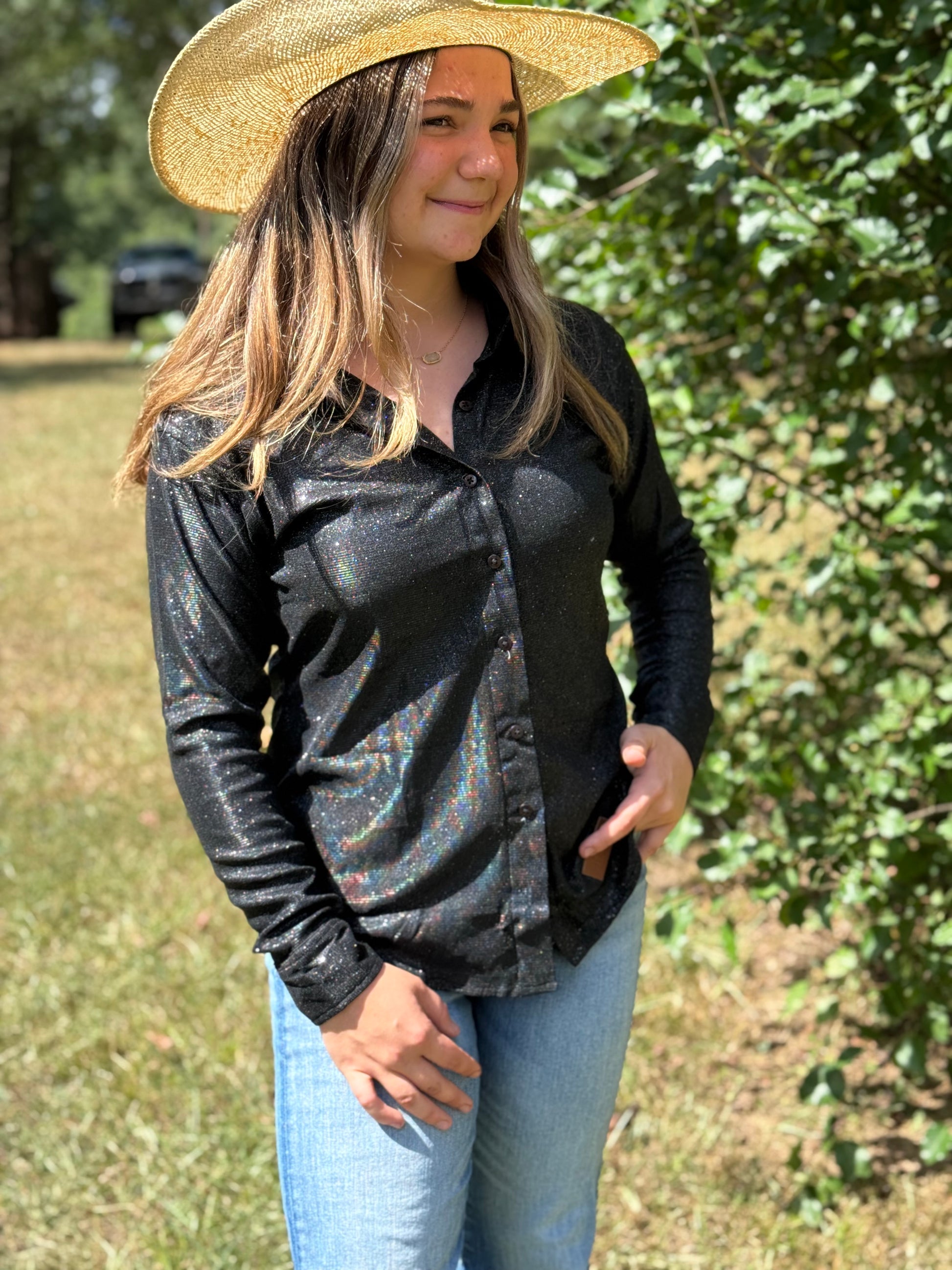 This shirt may shed a small amount of glitter when new — totally normal and worth the shine ✨